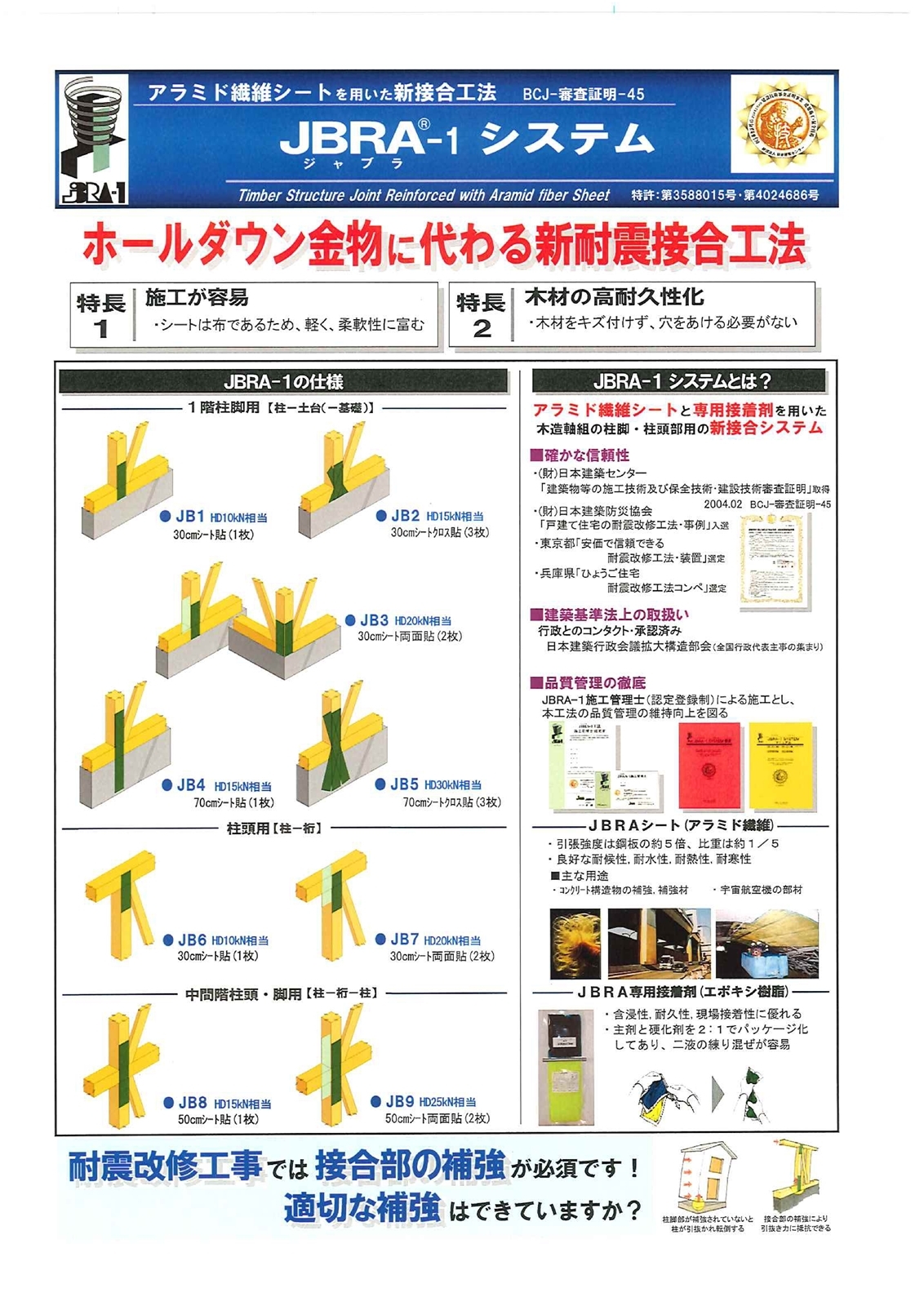 現場で使用した施工材料(JBRA-1の紹介)☆既存住宅の耐震補強及び耐久性補強の施工材料☆